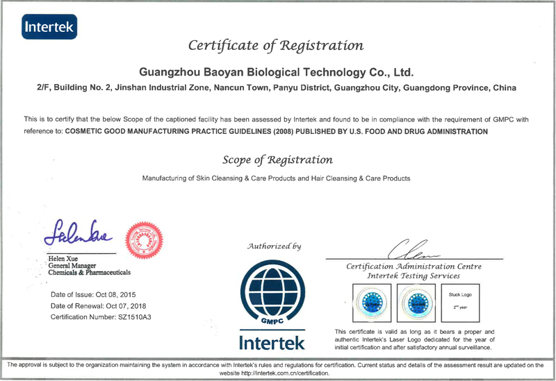 廣州葆妍生物科技有限公司位于廣州番禺金山工業園,成立于2009 年,經營面積20000平方,集化妝品(護膚類、彩妝類)配方開發、生產加工于一體,專業化、規模化的化妝品OEM/ODM/OBM企業。 “追求卓越,秉承健康,成就美麗”的經營理念,致力于健康美麗事業。